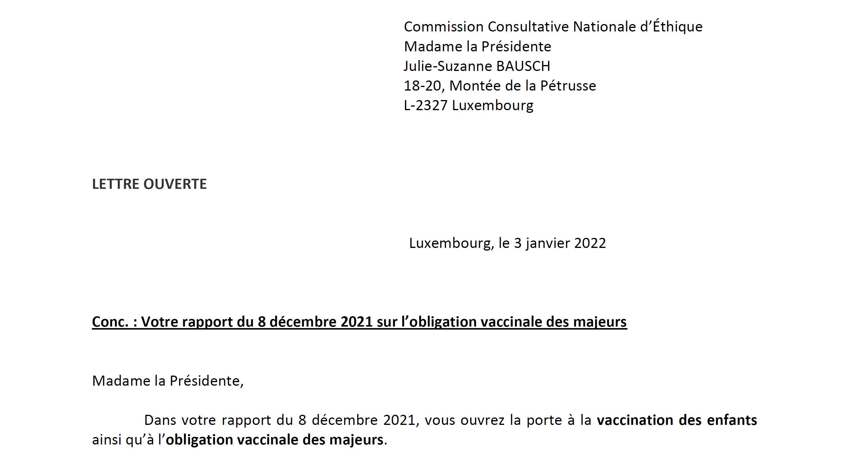 Cette lettre ouverte réagit au rapport de la commission en date du 8 décembre qui ouvre la porte à la vaccination des enfants ainsi qu’à l’obligation vaccinale des majeurs. Particulièrement étayé sur un plan juridique, le courrier rappelle que l'enjeu de la vaccination obligatoire dépasse le seul cadre sanitaire, ce dernier ne peut à lui seul permettre de faire voler en éclat les textes et conventions éthiques sensés prévenir les dérives médicales ou totalitaires depuis le procès de Nuremberg.